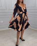 SPESIFIKASJONER Stil: Elegant Materiale: 5% Spandex, 95% Polyester Kjole type: Omslags- Kjolens lengde: Knelengde Halslinje: Høy hals Mønstertype: Geometrisk trykk Ermetype: Vanlig erme Erme lengde: Langermet Detaljer: Spalte, Rynket Passform type: Vanlig Årstid: Vår, Høst, Vinter Anledning: Daglig Pakken inkluderer: 1 x Kjole STØRRELSESTA...