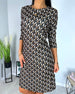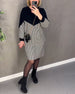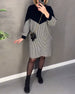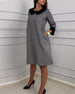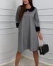 SPESIFIKASJONER Stil: Elegant, Forretning Materiale: 100% Polyester Kjole type: Rett Kjole Kjolens lengde: Knelengde Halslinje: Rund hals Mønstertype: Geometrisk trykk Ermetype: Vanlig erme Erme lengde: 3/4 erme Detaljer: Lappeverk Passform type: Vanlig Årstid: Vår, Høst, Vinter Anledning: Daglig, Arbeid Pakken inkluderer: 1 x Kjole STØRR...