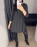 SPESIFIKASJONER Stil: Uformelt Materiale: Bomullsblandinger Kjole type: Rett Kjole Kjolens lengde: Midi Halslinje: Rund hals Mønstertype: Figur Ermetype: Senket skulder Erme lengde: Langermet Detaljer: Rynket Passform type: Vanlig Årstid: Høst, Vinter Anledning: Daglig Pakken inkluderer: 1 x Kjole STØRRELSESTABELL (cm) Størrelse Bryst L...