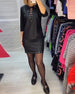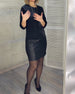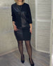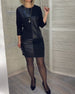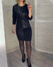 SPESIFIKASJONER Stil: Elegant Materiale: Bomullsblandinger, PU-skinn Kjole type: Rett Kjole Kjolens lengde: Over kneet Halslinje: Rund hals Mønstertype: Ensfarget Ermetype: Vanlig erme Erme lengde: Langermet Detaljer: Lappeverk Passform type: Vanlig Årstid: Vår, Høst, Vinter Anledning: Daglig Pakken inkluderer: 1 x Kjole STØRRELSESTABELL (...