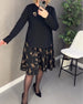 SPESIFIKASJONER Stil: Elegant, Elegant Materiale: Bomullsblandinger, Blonder Kjole type: Rett Kjole Kjolens lengde: Knelengde Halslinje: Krage Mønstertype: Ensfarget Ermetype: Vanlig erme Erme lengde: Langermet Detaljer: Uthult, Blonder Passform type: Løs Årstid: Vår, Sommer, Høst Anledning: Daglig Pakken inkluderer: 1 x Kjole STØRRELSESTA...