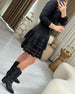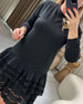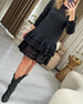 SPESIFIKASJONER Stil: Elegant Materiale: Bomullsblandinger Kjole type: Rett Kjole Kjolens lengde: Knelengde Halslinje: Rund hals Mønstertype: Ensfarget Ermetype: Volanger erme Erme lengde: Langermet Detaljer: Lappeverk, Rufsete Passform type: Vanlig Årstid: Vår, Høst, Vinter Anledning: Daglig Pakken inkluderer: 1 x Kjole STØRRELSESTABELL (...