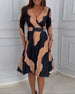 SPESIFIKASJONER Stil: Elegant, Fest Materiale: 100% Polyester Kjole type: Rett Kjole Kjolens lengde: Over kneet Halslinje: Rund hals Mønstertype: Ensfarget Ermetype: Vanlig erme Erme lengde: Kort erme Detaljer: Lappeverk Passform type: Vanlig Årstid: Vår, Sommer, Høst Anledning: Daglig, Parti Pakken inkluderer: 1 x Kjole STØRRELSESTABELL (...