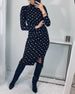 SPESIFIKASJONER Stil: Uformelt Materiale: 5% Spandex, 95% Polyester Kjole type: Rett Kjole Kjolens lengde: Midi Halslinje: Slag Mønstertype: Trykt Ermetype: Vanlig erme Erme lengde: Langermet Detaljer: Knapper Passform type: Vanlig Årstid: Vår, Høst, Vinter Anledning: Daglig Pakken inkluderer: 1 x Kjole STØRRELSESTABELL (cm) St...