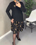 SPESIFIKASJONER Stil: Uformelt Materiale: Bomullsblandinger Kjole type: A-line Kjolens lengde: Knelengde Halslinje: Rund hals Mønstertype: Trykt Ermetype: Vanlig erme Erme lengde: Langermet Detaljer: Lappeverk Passform type: Løs Årstid: Høst, Vinter Anledning: Daglig, Arbeid Pakken inkluderer: 1 x Kjole STØRRELSESTABELL (cm) Størrelse B...