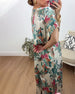 SPESIFIKASJONER Stil: Elegant Materiale: Bomullsblandinger Kjole type: A-line Kjolens lengde: Maxi Halslinje: Slag Mønstertype: Blomstret Ermetype: Vanlig erme Erme lengde: 3/4 erme Detaljer: Snøre opp,Rynket Passform type: Vanlig Årstid: Vår,Sommer Anledning: Daglig Pakken inkluderer: 1 x Kjole STØRRELSESTABELL (cm) Størrelse Bryst Lengde ...