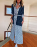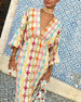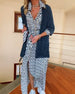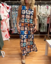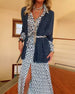Kjole med geometrisk trykk med jakkeslag og splitt