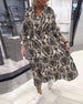SPESIFIKASJONER Stil: Uformelt Materiale: Bomullsblandinger Kjole type: Rett Kjole Kjolens lengde: Midi Halslinje: V-hals Mønstertype: Trykt Ermetype: Flaggermus erme Erme lengde: Langermet Detaljer: Knapper Passform type: Løs Årstid: Vår,Sommer,Høst Anledning: Daglig Pakken inkluderer: 1 x Kjole STØRRELSESTABELL (cm) Størrelse Bryst Lengde ...