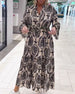 SPESIFIKASJONER Stil: Uformelt Materiale: 100% Polyester Kjole type: A-line Kjolens lengde: Maxi Halslinje: V-hals Mønstertype: Trykt Ermetype: Utvidet erme Erme lengde: Langermet Detaljer: Lappeverk,Snøre opp Passform type: Vanlig Årstid: Vår,Sommer Anledning: Daglig Pakken inkluderer: 1 x Kjole STØRRELSESTABELL (cm) Størrelse Br...