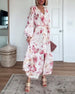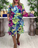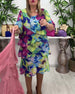 Uformell kjole med trekvart ermer i jakkeslag med botanisk trykk