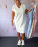 SPESIFIKASJONER Stil: Uformelt Materiale: 70%Bomull,30%Polyester Kjole type: Rett Kjole Kjolens lengde: Knelengde Halslinje: V-hals Mønstertype: Ensfarget Ermetype: Vanlig erme Erme lengde: Kort erme Detaljer: Lomme Passform type: Vanlig Årstid: Sommer Anledning: Daglig Pakken inkluderer: 1 x Kjole STØRRELSESTABELL (cm) Størrelse Bryst ...