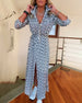 SPESIFIKASJONER Stil: Uformelt Materiale: Bomullsblandinger Kjole type: A-line Kjolens lengde: Maxi Halslinje: Slag Mønstertype: Geometrisk trykk Ermetype: Vanlig erme Erme lengde: Langermet Detaljer: Snøre opp,Spalte Passform type: Vanlig Årstid: Vår,Sommer Anledning: Daglig Pakken inkluderer: 1 x Kjole STØRRELSESTABELL (cm) Størrelse Bryst...