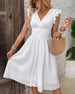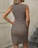 Geometrisk trykk med dyp V plissert ermeløs kjole