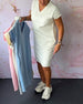 SPESIFIKASJONER Stil: Elegant,Forretning Materiale: Bomullsblandinger Kjole type: A-line Kjolens lengde: Knelengde Halslinje: Rund hals Mønstertype: Ensfarget Ermetype: Vanlig erme Erme lengde: Kort erme Detaljer: Rynket Passform type: Vanlig Årstid: Sommer Anledning: Daglig,Arbeid Pakken inkluderer: 1 x Kjole STØRRELSESTABELL (cm) Størrelse...