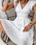 SPESIFIKASJONER Stil: Uformelt Materiale: 97% Polyester, 3% Spandex Kjole type: A-line Kjolens lengde: Midi Halslinje: V-hals Mønstertype: Trykt Ermetype: Vanlig erme Erme lengde: 3/4 erme Detaljer: Snøre opp,Rynket Passform type: Vanlig Årstid: Vår,Sommer Anledning: Daglig Pakken inkluderer: 1 x Kjole STØRRELSESTABELL (cm) Størrel...