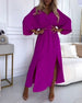 SPESIFIKASJONER Stil: Elegant Materiale: Bomullsblandinger Kjole type: A-line Kjolens lengde: Maxi Halslinje: V-hals Mønstertype: Ensfarget Ermetype: Vanlig erme Erme lengde: Langermet Detaljer: Snøre opp,Spalte Passform type: Vanlig Årstid: Vår,Sommer Anledning: Daglig Pakken inkluderer: 1 x Kjole STØRRELSESTABELL (cm) Størrelse Bryst Lengd...