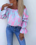 SPESIFIKASJONER Topp type: Topper Stil: Uformelt Materiale: 3% Spandex,97% Polyester Anledning: Daglig Halslinje: Off Shoulder Mønstertype: Trykt Ermetype: Lanterne erme Erme lengde: Langermet Passform type: Vanlig Årstid: Vår, Sommer, Høst Detaljer: Rynket Pakken inkluderer: 1 x Topp STØRRELSESTABELL (cm) Størrelse Bryst Lengde Ar...