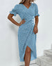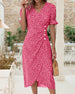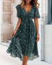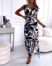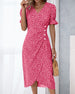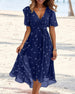 SPESIFIKASJONER Stil: Elegant Materiale: Chiffon,Polyester Kjole type: A-line Kjolens lengde: Midi Halslinje: V-hals Mønstertype: Trykt Ermetype: Vanlig erme Erme lengde: Kort erme Detaljer: Lappeverk, Snøre opp Passform type: Vanlig Årstid: Vår, Sommer, Høst Anledning: Daglig Pakken inkluderer: 1 x Kjole STØRRELSESTABELL (cm) S...