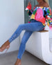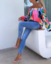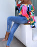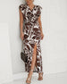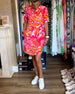 Uformell kjole med leopard og fargerikt trykk og dyp V