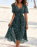 EGENSKAPER Elegant V-halsdesign: Den elegante V-halsdesignen fremhever perfekt den sjarmerende halslinjen, og tilfører et snev av eleganse og sjarm til det generelle utseendet. Utsøkte utskrifter: De unike og utsøkte trykkene er som kunstverk som pynter på skjørtet, og gjør deg til fokus uansett hvor du går, og viser din motesmak. Elegante k...