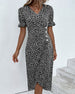 SPESIFIKASJONER Stil: Uformelt Materiale: Bomullsblandinger Kjole type: Rett Kjole Kjolens lengde: Midi Halslinje: V-hals Mønstertype: Leopard Ermetype: Vanlig erme Erme lengde: Halv erme Passform type: Vanlig Årstid: Vår,Sommer Anledning: Daglig Pakken inkluderer: 1 x Kjole STØRRELSESTABELL (cm) Størrelse EU Bryst Lengde S 36 ...