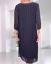 Mote ensfarget kjole med rund hals og hofteviklet langermet