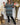Fasjonable ensfargede bukser med lomme og uregelmessig patchwork